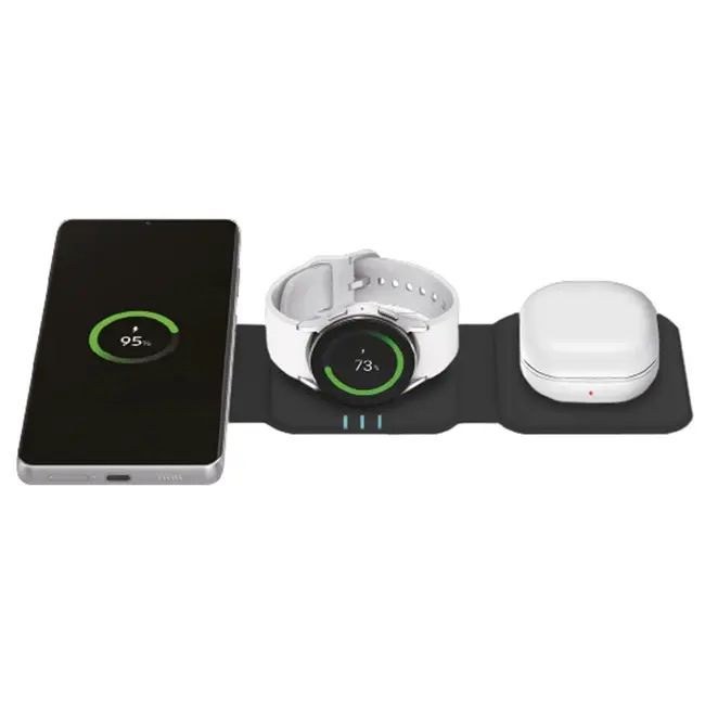 | Кратко | 3 пристрої одночасно. Підставка для сматфону. Вхід: DC 9V/3A 12V/3A. Вихід: телефон: 15Вт/10Вт/7.5Вт/5Вт; навушники: 3Вт; смарт годинник: 2.5Вт (Apple Watch). Ефективність 73%. Відстань до 6 мм. Робоча частота: 110-205KHz. Шнур живлення в комплекті. |