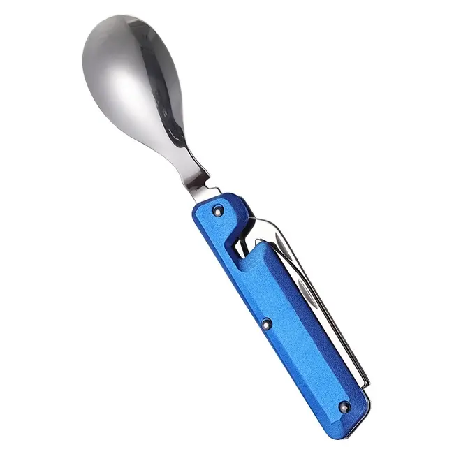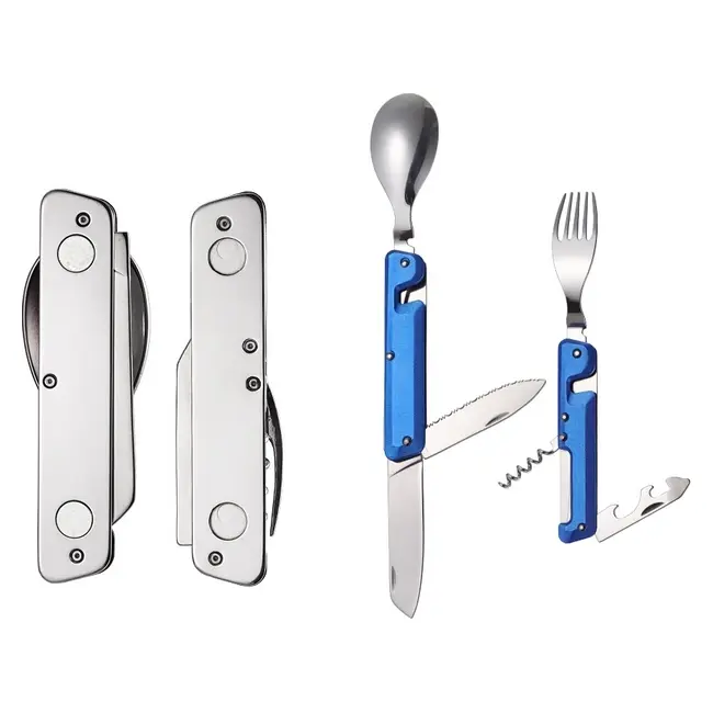 | Кратко | Легкий і зручний набір, виготовлений з комбінації нержавіючої сталі та алюмінію. Підходить для кемпінгу та походів. Швидко і легко розділяється на дві частини - окремі виделку та ніж з ложкою. Частини з’єднуються двома магнітними кліпсами.До складу набору входять: ложка, веделка, ніж, ніж-пилка, штопор, відкривачка для пляшок, відкривачка для консервів. |