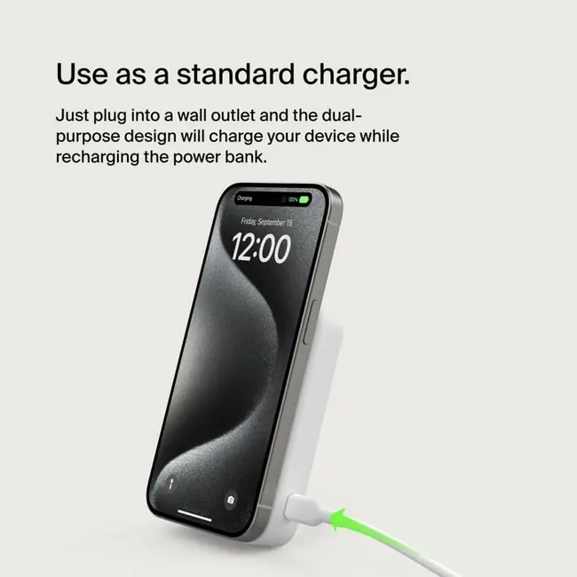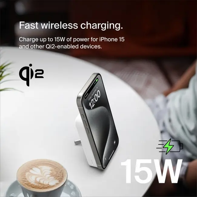 | Кратко | Бездротова зарядка 15 Вт Qi2. PD 18 Вт. USB-TypeC 10 Вт. Сумісний з MagSafe iPhone. Вбудована піставка. Наскрізна зарядка - одночасно заряджати пристрій під час заряджання павербанку. В комплекті кабель USB Type-C - USB Type-C 1м. |
