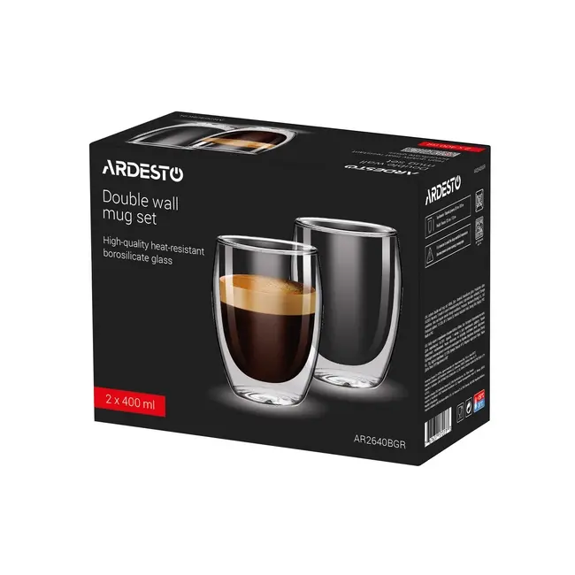 Набір з двох чашок скляний з подвійними стінками Ardesto 400 мл